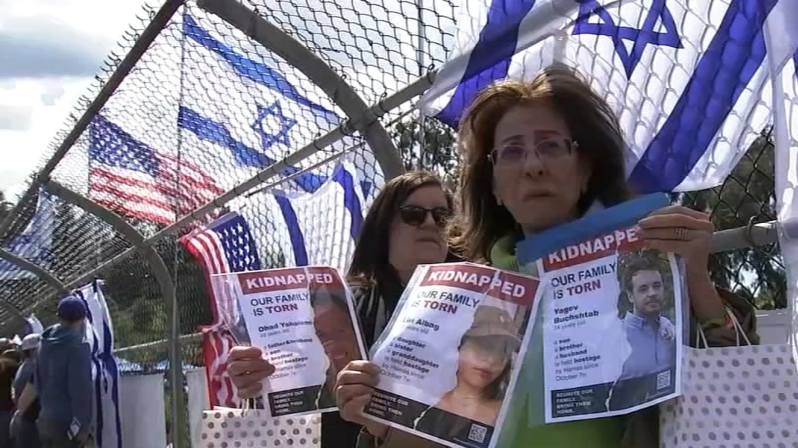 "This is Yagev Buchshtab. He is my brother-in-law, and he's very dear to my heart," said Yael Nidam Kirsht, holding up a hostage poster.