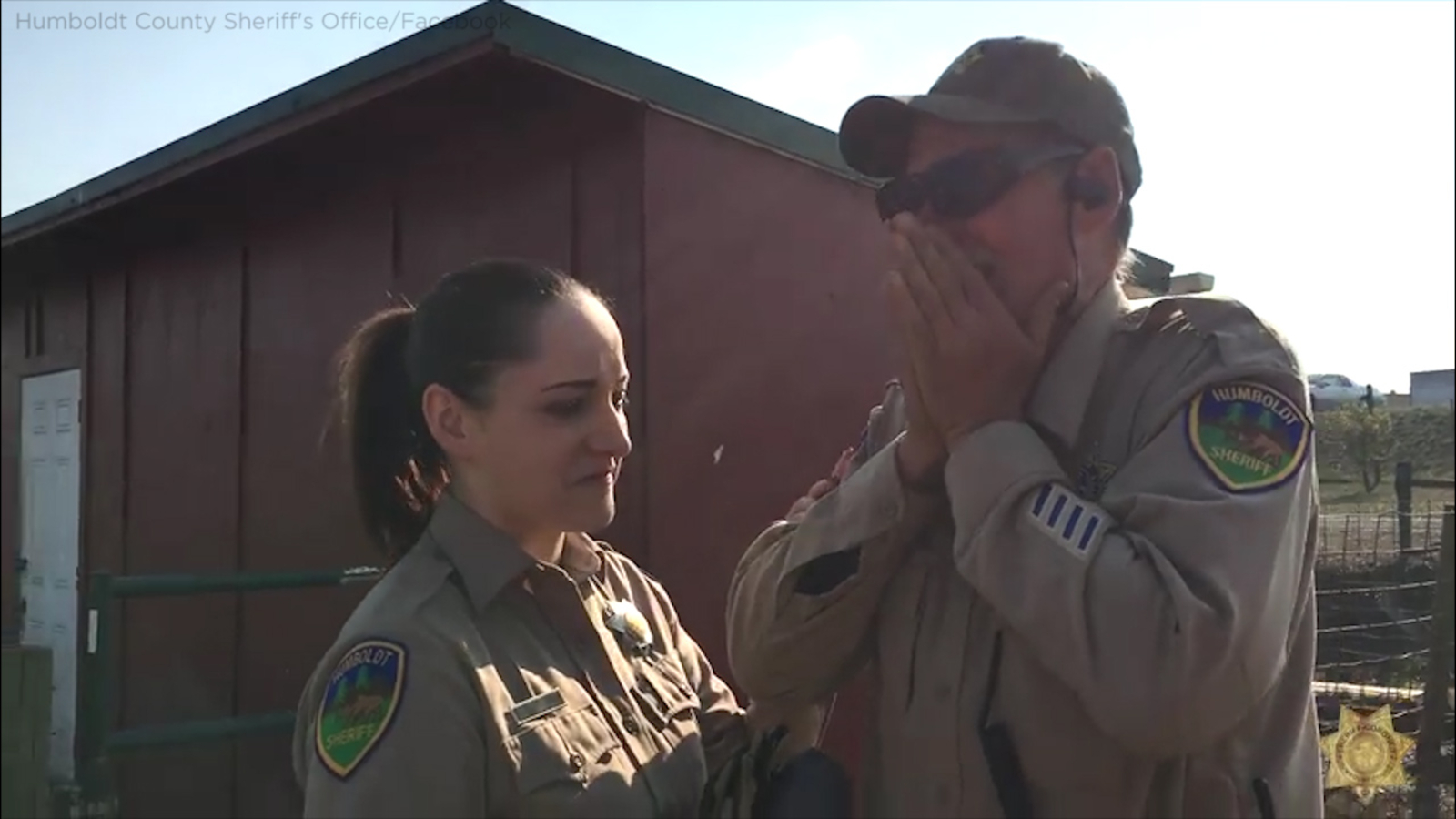Jeff Dishmon, a correctional deputy who manages a work-study program at the Humboldt County Correctional Facility, received a pair of specialized glasses Nov. 14 from his longtime coworker Samantha Freese. A fellow correctional deputy, Freese has worked alongside Dishmon for eight years, and the two had become close, calling one another "grandpa" and "granddaughter."