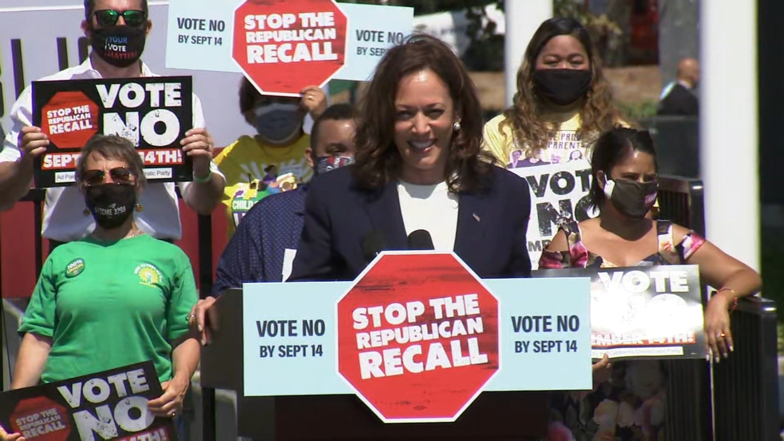 SAN LEANDRO, Calif. (KGO) -- Vice President Kamala Harris was in the Bay Area Wednesday to campaign for Gov. Gavin Newsom in California's recall election.