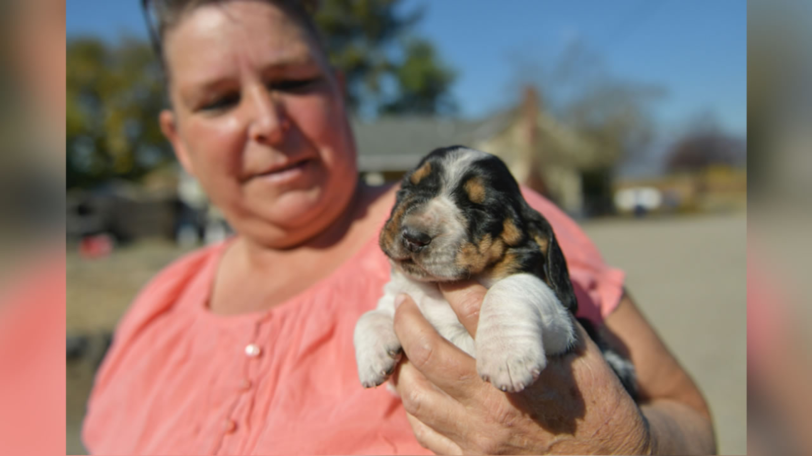 HEALDSBURG, Calif. (KGO) -- Say hello to Sadie Kincade. She's a basset house puppy, born just one day before the fire for which Ellen Johnson named her.