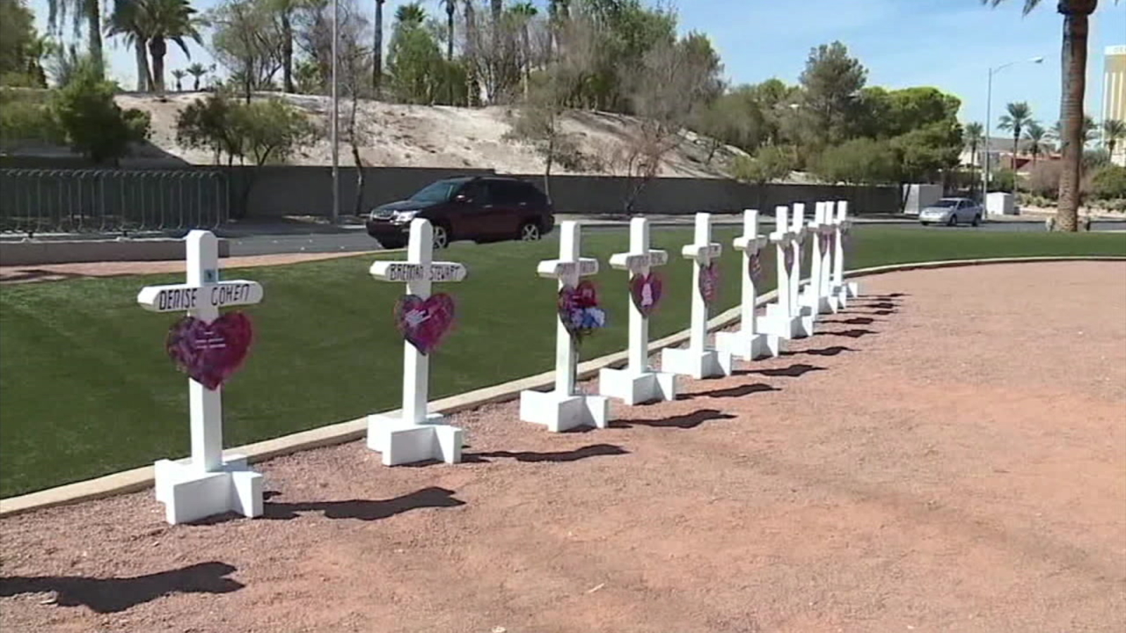 Greg Zanis arrived Friday in Las Vegas, where one by one he displayed the newest set of Crosses for Losses at the iconic Vegas welcome sign -- just as he did last year.