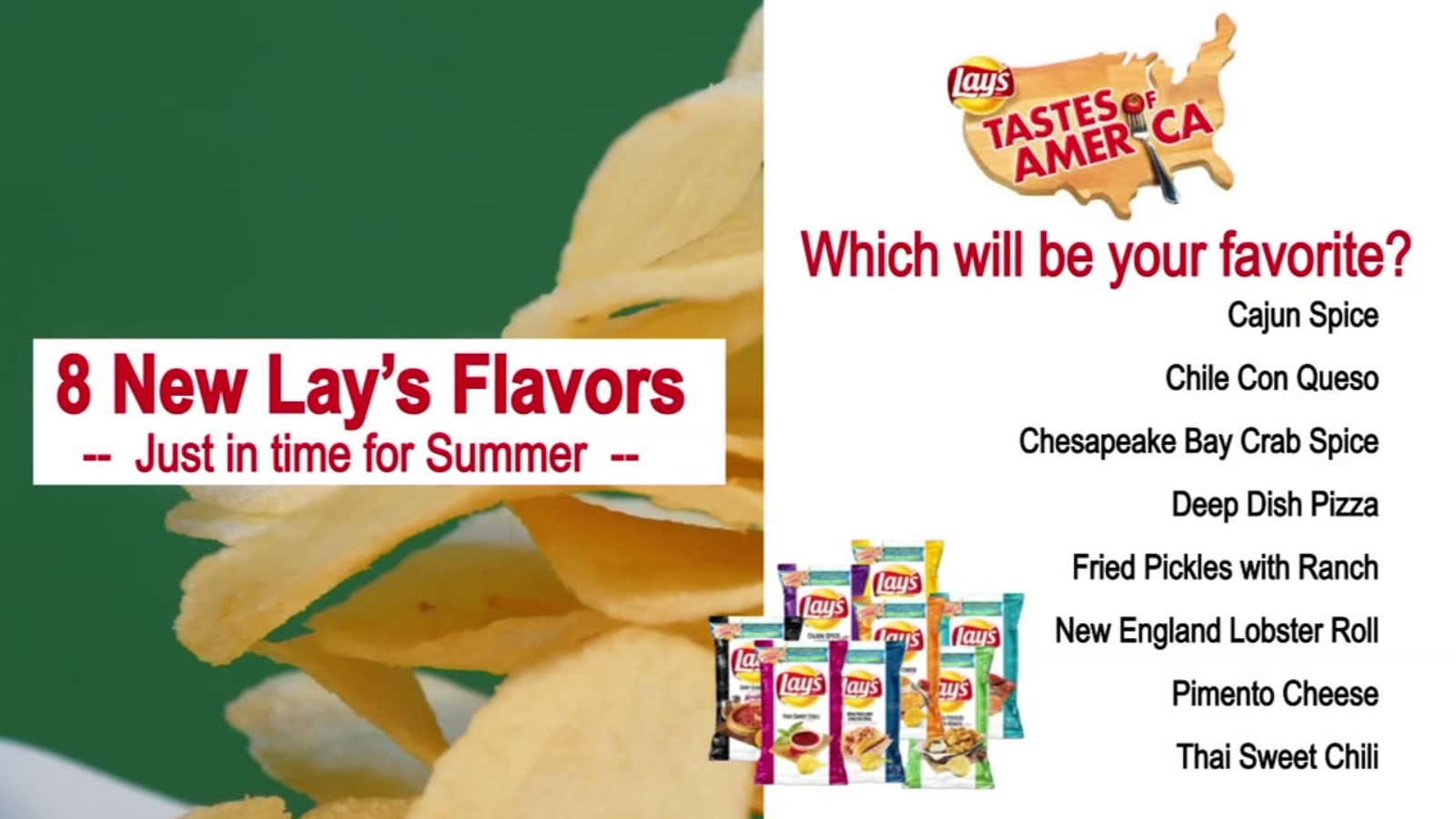 Other flavors include Chile con Queso from the Southwest, Deep Dish Pizza from the Midwest, and Lobster Roll from New England.