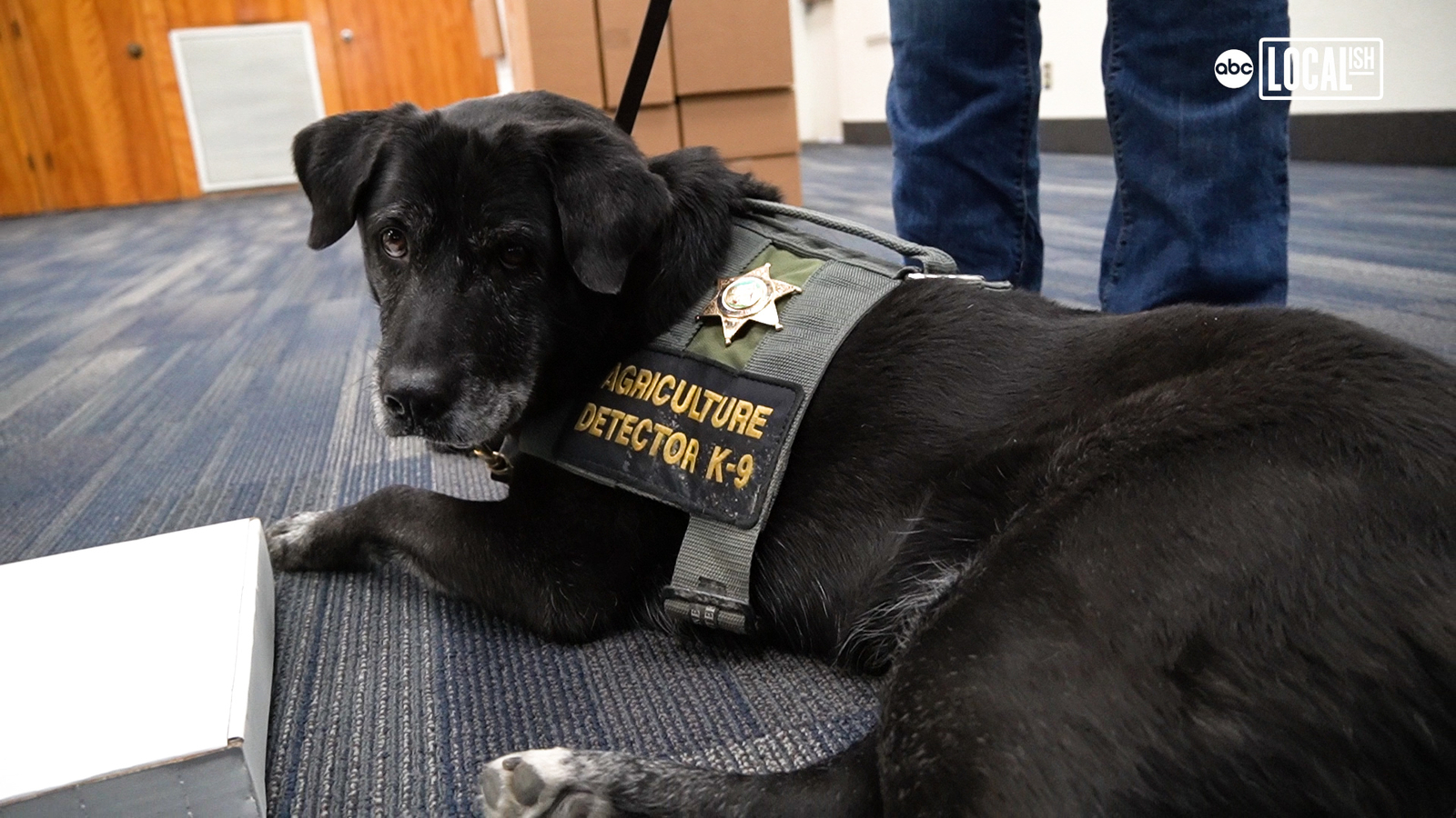 Soya showed off a simulation of an inspection. She sniffed out multiple stacks of boxes and found one that had a mango in it. She scratched the box three times, indicating to Tomlinson that there's an agriculture product inside, and during a real inspection, it would have been inspected.
