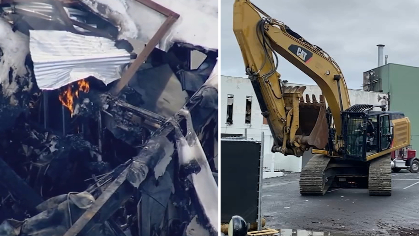 LOS ALTOS, Calif. (KGO) -- After nearly a month of confusion and delay, demolition on a Los Altos shopping center that burned down Christmas Day is now underway.
