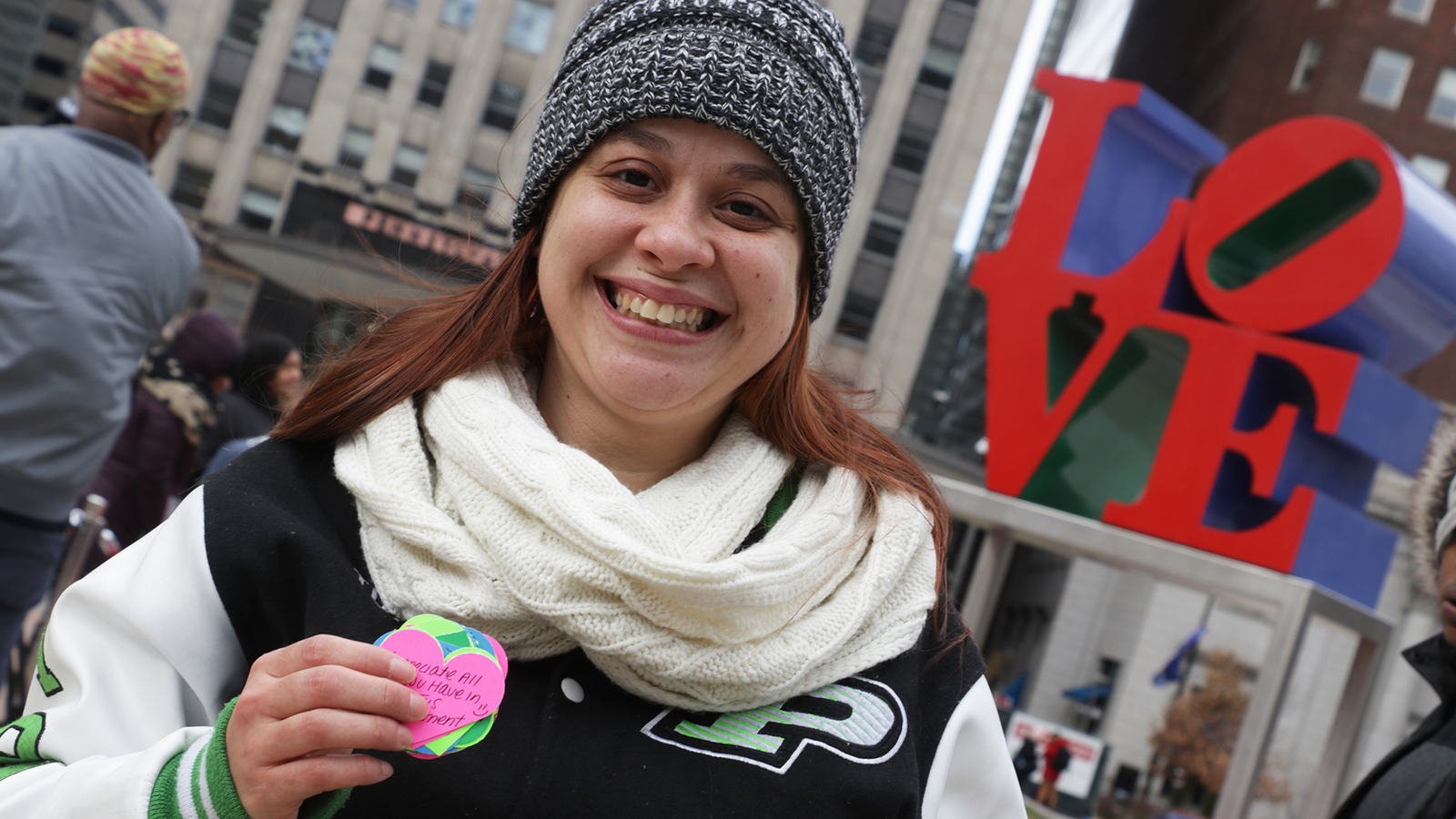 With more than 8,000 hearts and counting, she roams around the Philadelphia area to hand them out to total strangers just to brighten their day.