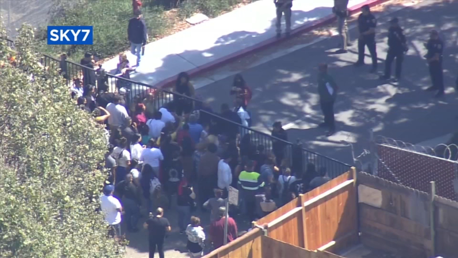 From the view of ABC7 News' chopper, dozens of community members could be seen outside Madison Park Academy shortly after the 13-year-old boy was shot, then a 12-year-old boy taken into custody.