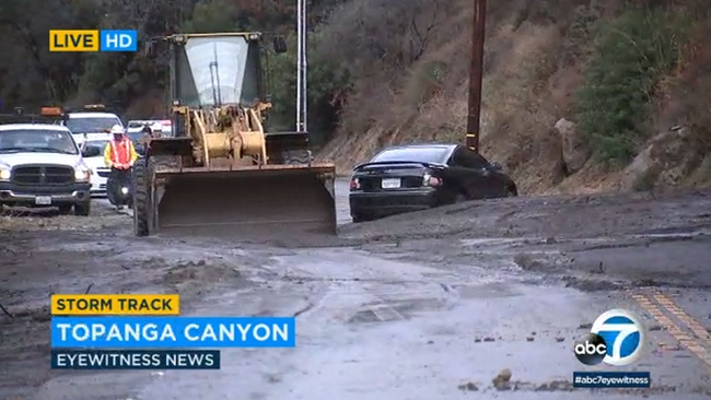 In Malibu, mudslides closed down a stretch of Topanga Canyon Boulevard between Pacific Coast Highway and Grand View Drive. The duration of the closure was not known, the California Highway Patrol said.