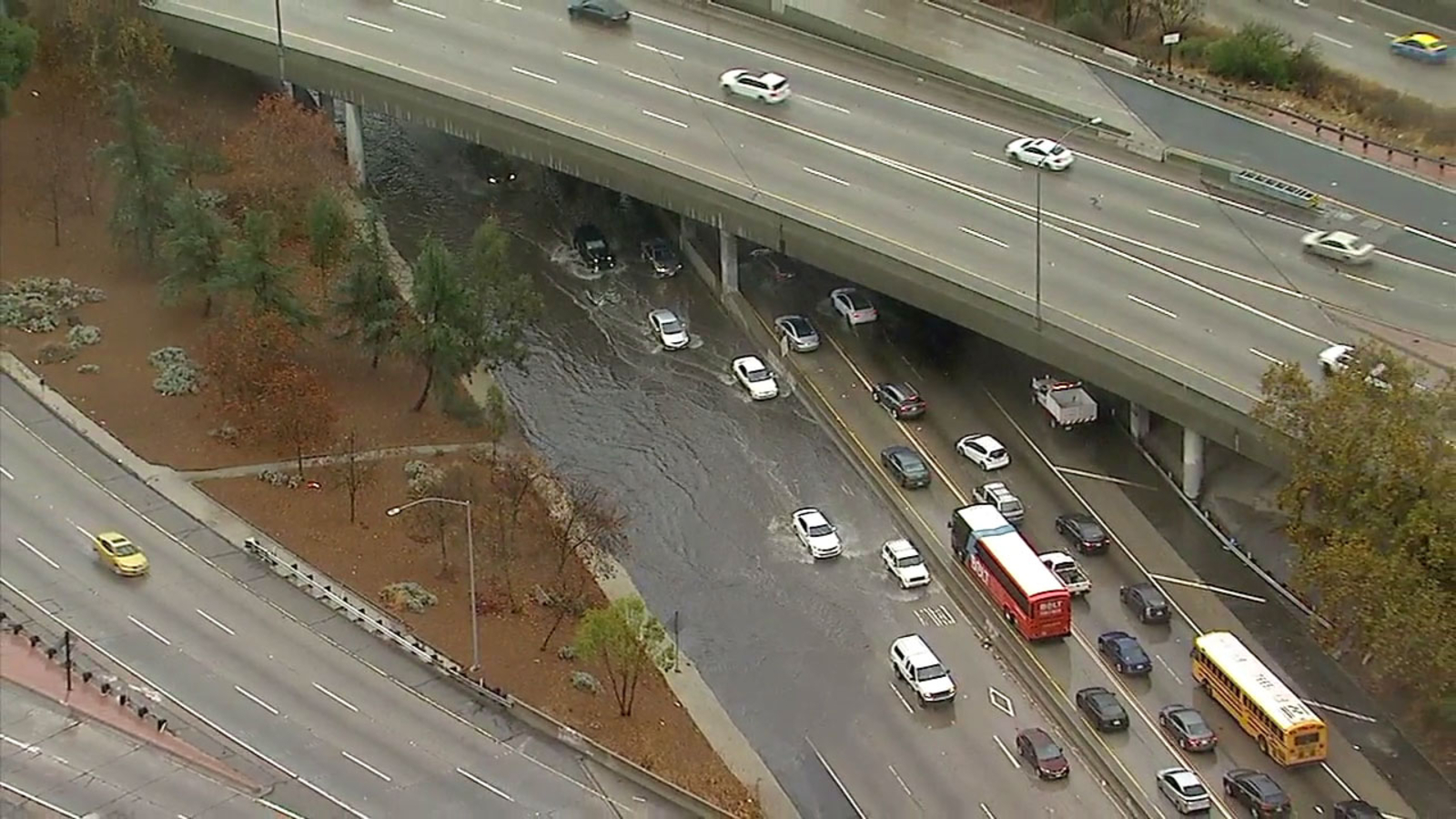 In North Hollywood, the California Highway Patrol shut down all lanes of the 170 Freeway near the 101/134 interchange due to significant flooding in the roadway for a brief time.