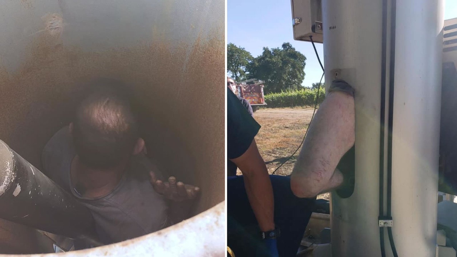 SANTA ROSA, Calif. (KGO) -- A man was rescued from the shaft of a vineyard fan outside Santa Rosa Tuesday morning after being stuck there for two days, according to the Sonoma County Sheriff's Office.