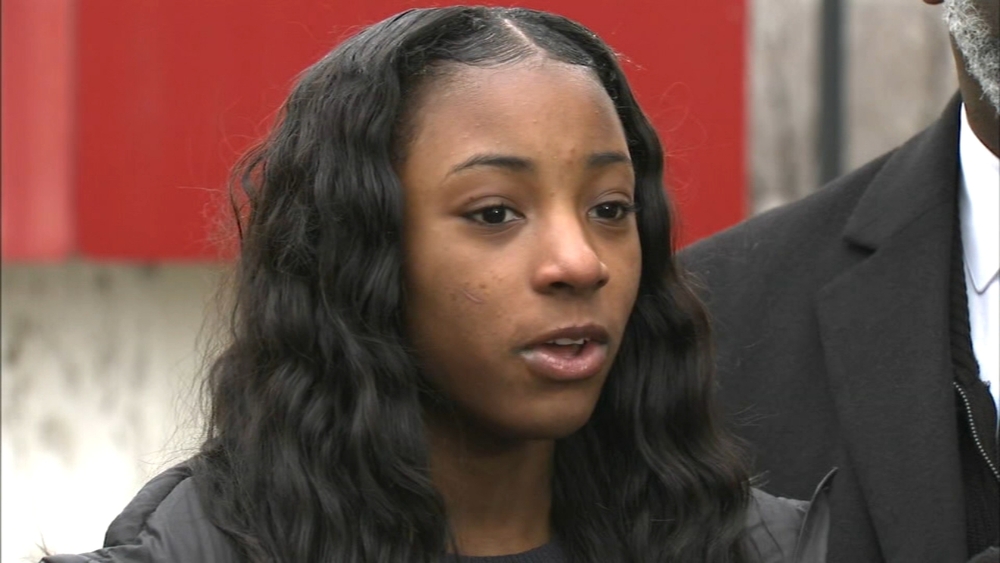 Video from security cameras inside Marshall High School in the city's East Garfield Park neighborhood shows Dnigma Howard talking with a classmate while two Chicago police officers stand by.