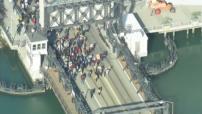 From the air, it was a sight to behold. As thousands marched across the Lefty O'Doul Bridge in San Francisco.