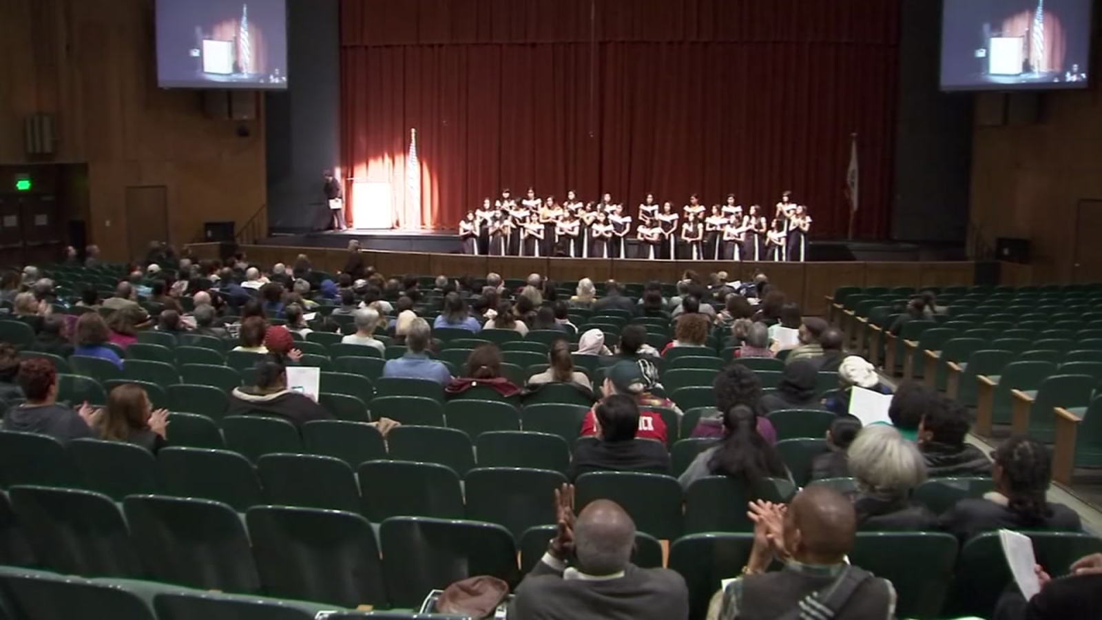 Through song and remembrance, hundreds celebrated Martin Luther King Jr.'s birthday at Chabot College in Hayward Monday night.