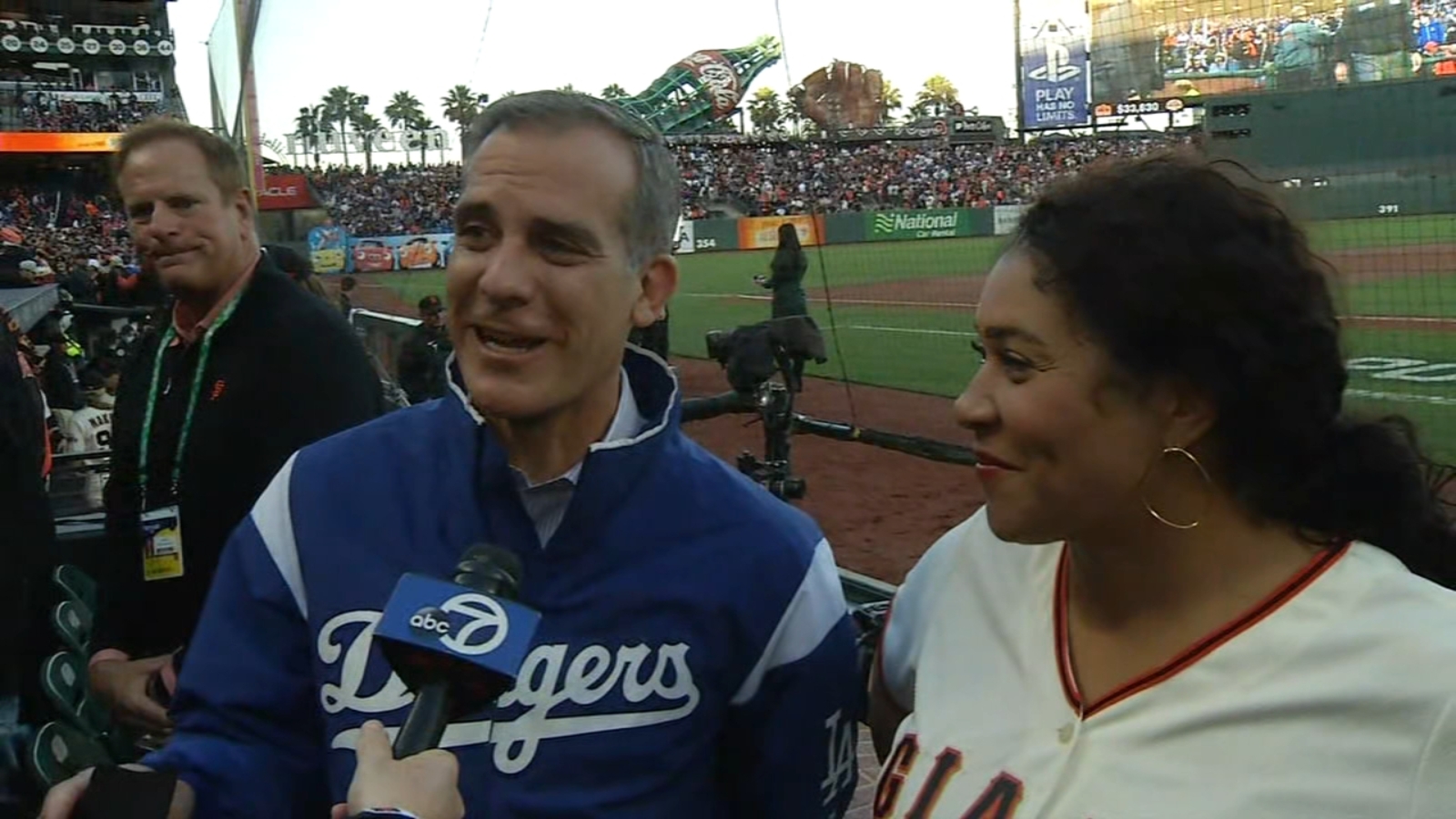 SAN FRANCISCO -- Los Angeles Mayor Eric Garcetti traveled up north to watch the Dodgers play the Giants in the deciding Game 5 of the National League Division Series.