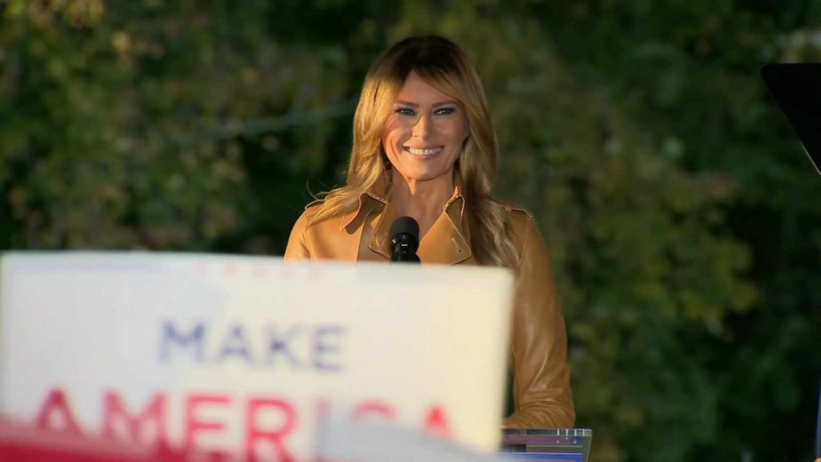 The first lady's remarks on the trail have been explicitly partisan and more combative than most of the public remarks she has given during her tenure in the White House. Trump also targeted Democratic presidential nominee Joe Biden.