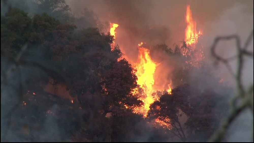 The wildfire is burning southeast from Moose Road in an area known as McNab Ranch, north of Hopland. The fire is burning in brush and grass oak woodland in steep terrain. Structures are threatened.