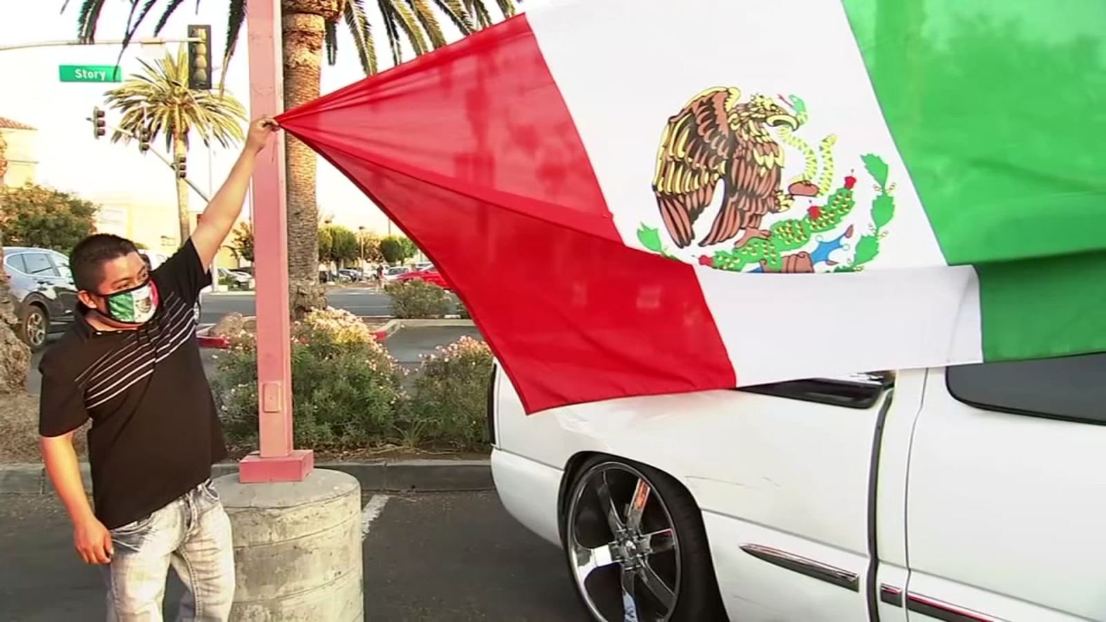 ABC7 News reporter J.R. Stone was outside the Cardenas market on Story Road, where crowds of people gathered in the parking lot. One little girl drove a big wheel with Mexican flags on it.