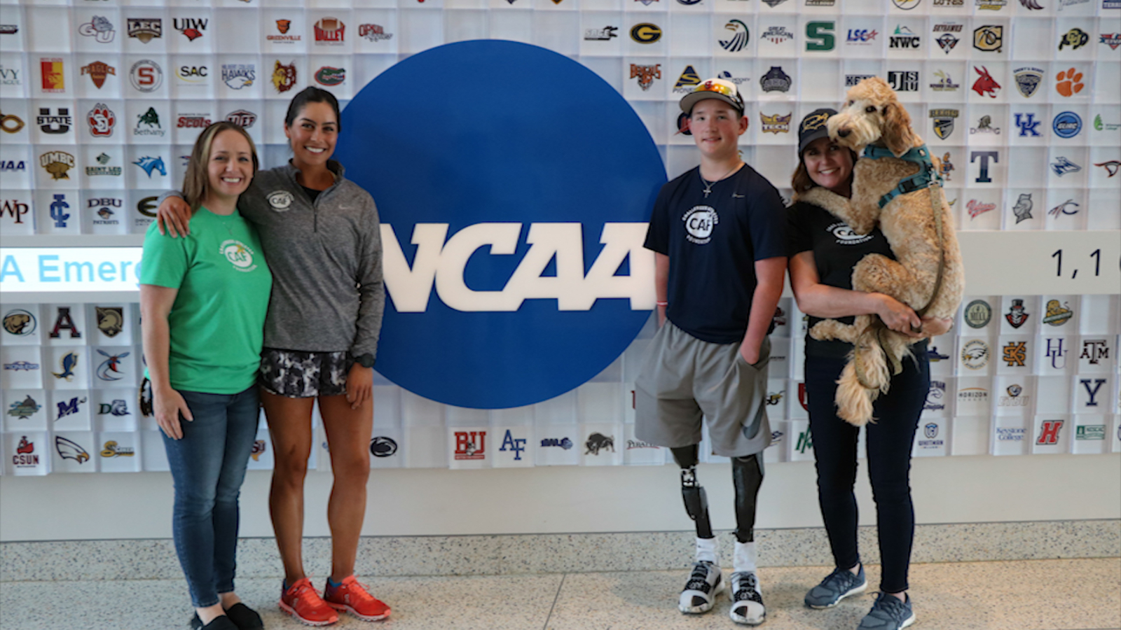 "We drove to Indianapolis to the NCAA Headquarters and met with CAF Athlete Landis Sims and his mother Amanda," Cuevas said. "Landis is an incredible athlete. He's 13-years-old and was born without hands and legs. He still plays basketball and baseball and excels at those two sports."