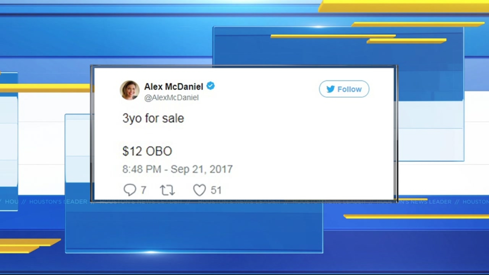 Alex McDaniel posted a message on Twitter saying her 3-year-old son was for sale for $12 or best offer.