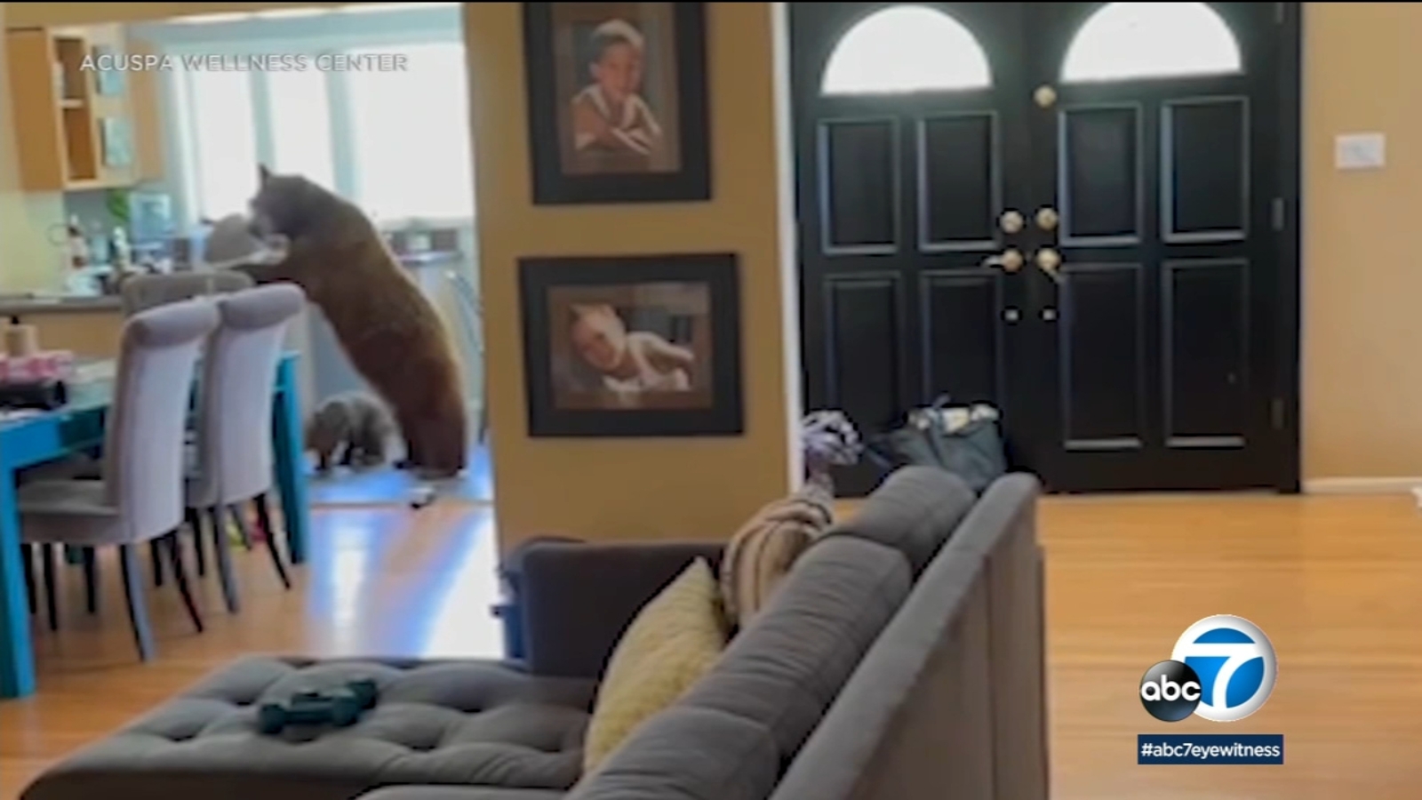 MONROVIA, Calif. -- A mama bear and her cub entered a Monrovia home earlier this month and helped themselves to some treats in the kitchen, video of the startling incident shows.