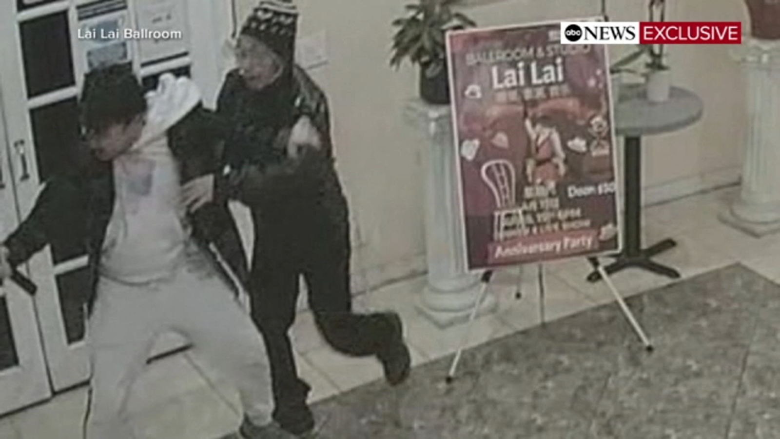The Lai Lai Ballroom & Studio's surveillance cameras captured the struggle between Tran and Tsay. Tsay told ABC News that he has bruising all over his body from the incident, including across his nose and the back of his head.