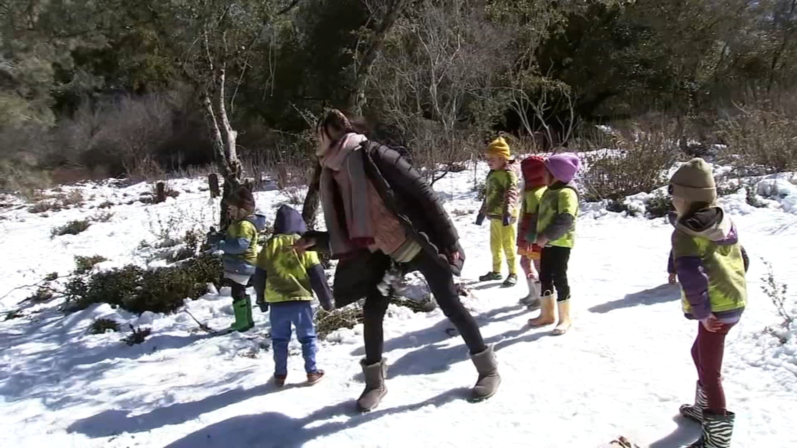 "Wednesdays are our adventure days," said Rebeca Cullinan, preschool teacher from San Francisco. "We packed the bus early this morning, and head out here. We brought some cardboard for sledding and having a blast."