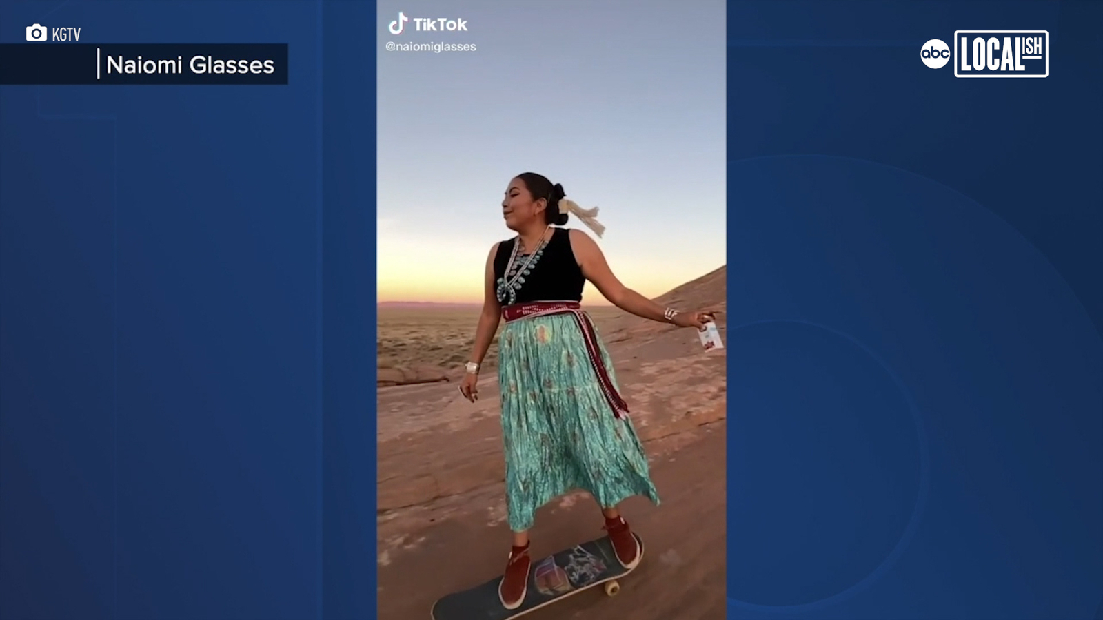 Her family moved back to the reservation when she was 12, and she began to notice the lack of skate parks. A few months ago, she decided to try skating on the smooth sandstone near her house, and it went viral on TikTok.
