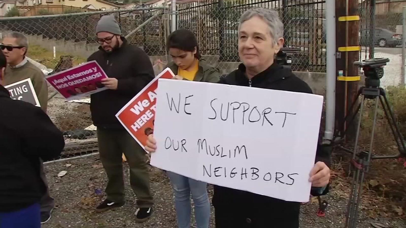 Among them were Latinos, Asian Americans and Jewish people who were greeting members of the Evergreen Islamic Center as they arrived for afternoon prayer. "We want to make sure that our residents, all of our residents, regardless of race, creed, national origin, immigration status or whom they love understand that we're here to back them up," Vice San Jose Mayor Magdalena Carrasco said.