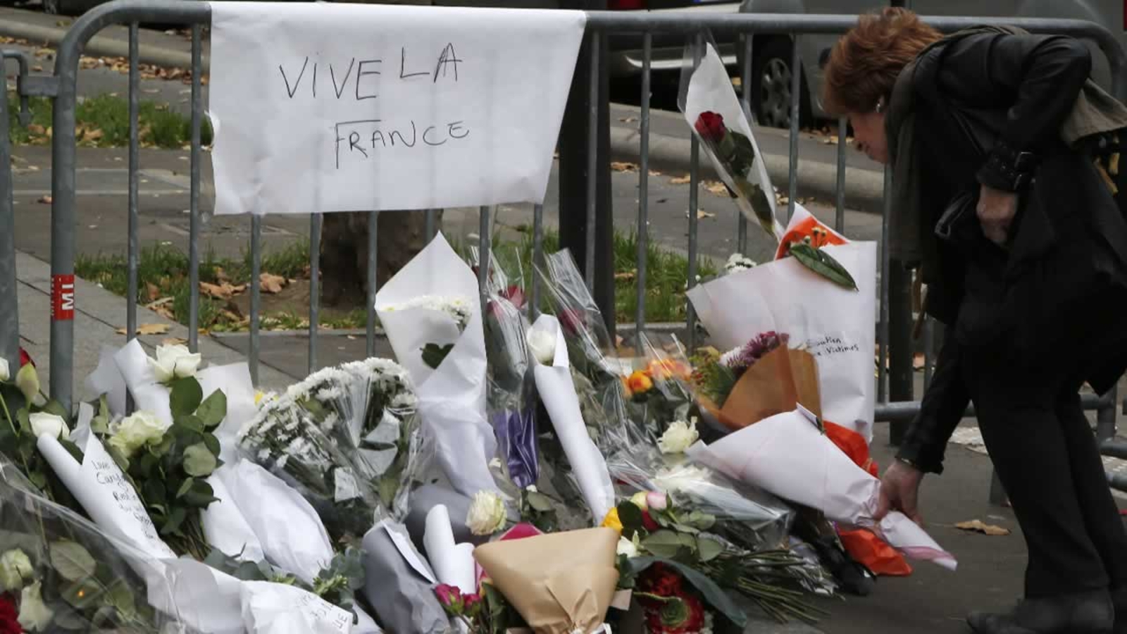 Parisians expressed shock, disgust and defiance in equal measure. Hundreds of soccer fans departing the stadium Friday night waved French flags and sang impromptu choruses of the national anthem, "Le Marseillaise." The next morning, hundreds queued outside a hospital near the Bataclan theater, scene of the most appalling violence, to donate blood. As a shrine of flowers expanded along the sidewalk, a lone guitarist sang John Lennon's peace ballad, "Imagine."