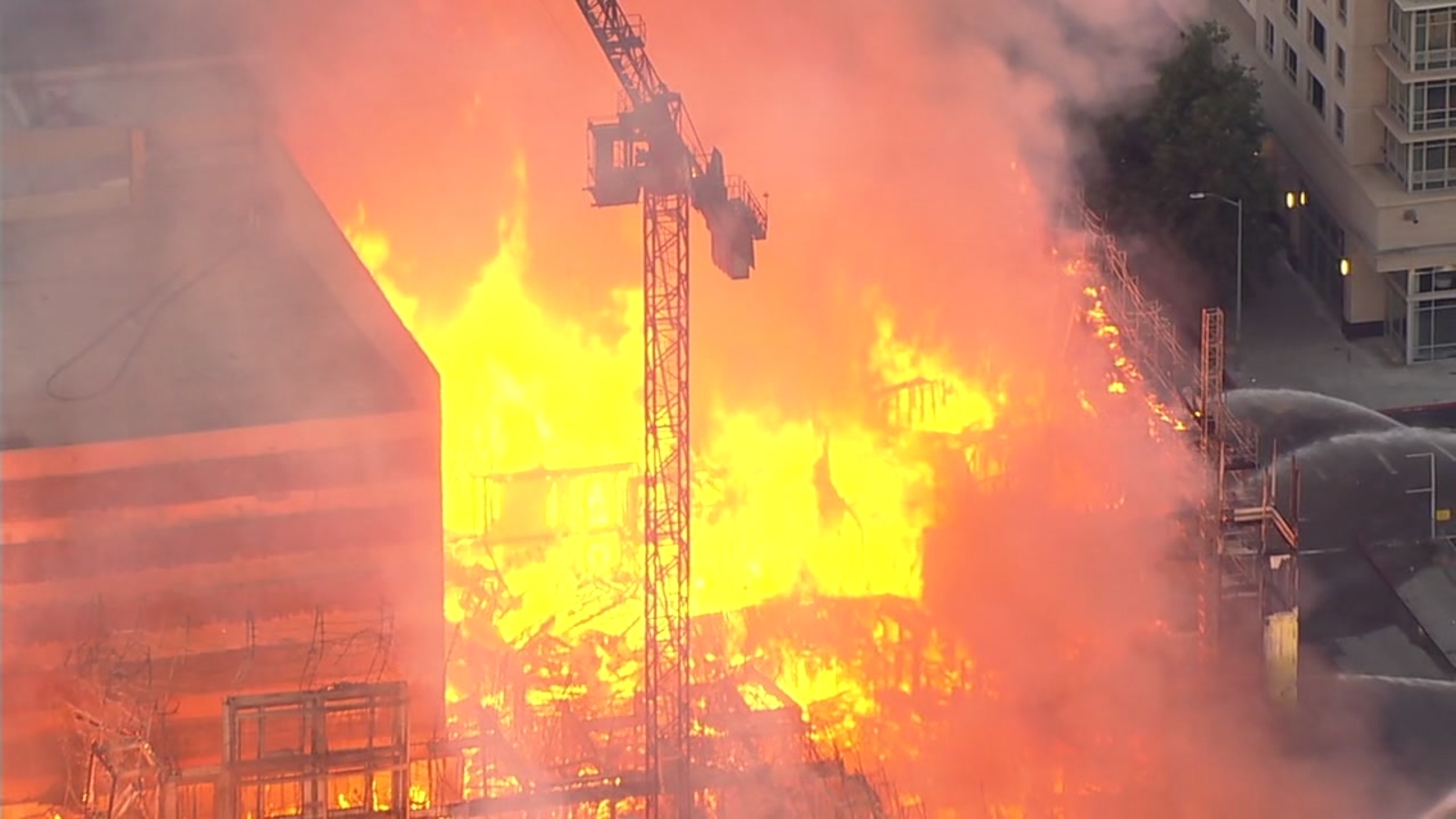 OAKLAND, Calif. (KGO) -- Firefighters have contained a 4-alarm fire at 24th and Valdez Street at a building under construction in Uptown Oakland.