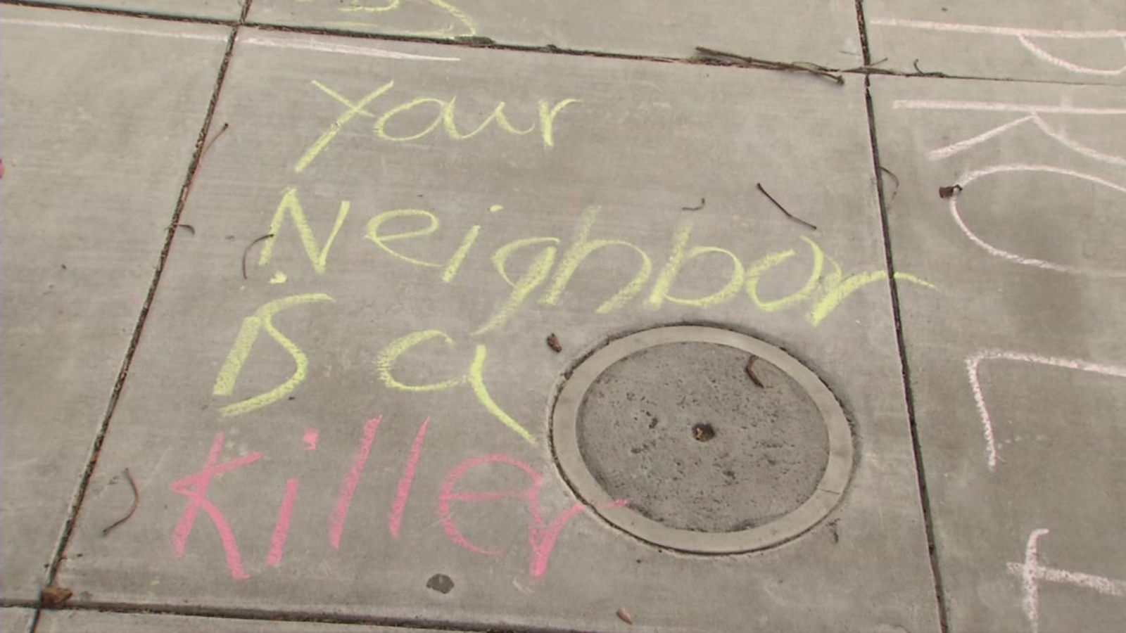 The protesters wrote on the sidewalk in chalk anti-abortion messages outside the homes of two commissioners named Dennis Richards and another who wanted to remain anonymous. Some of the messages that were seen on the sidewalk read: "Save the babies, baby killer and Richards kills."