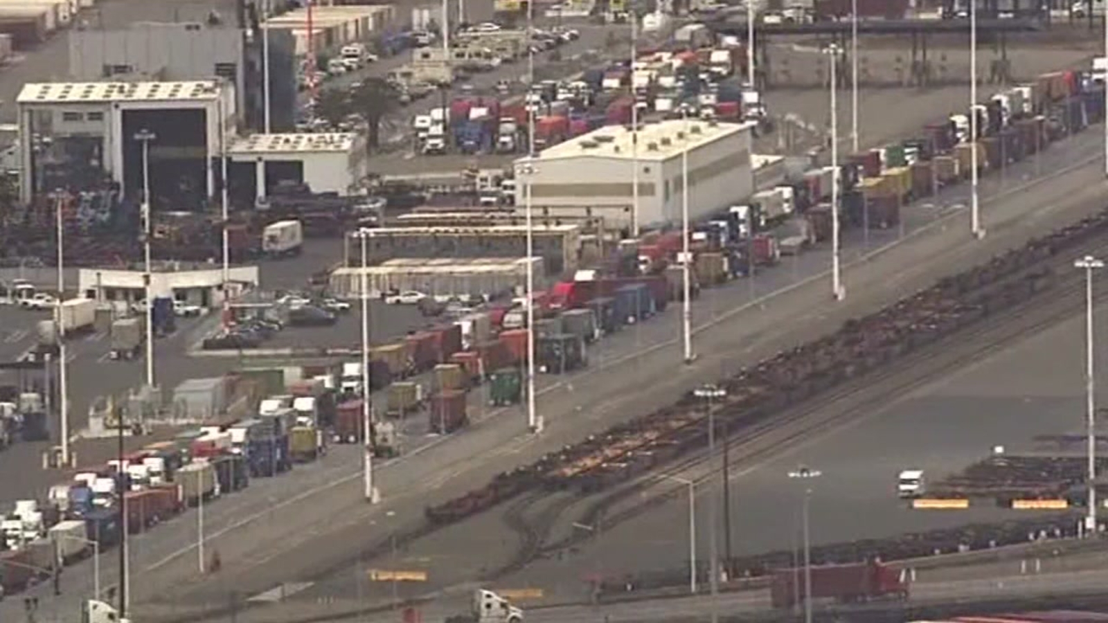 OAKLAND, Calif. (KGO) -- Traffic backed up at the Port of Oakland during the evening commute Thursday and temporarily stopped.