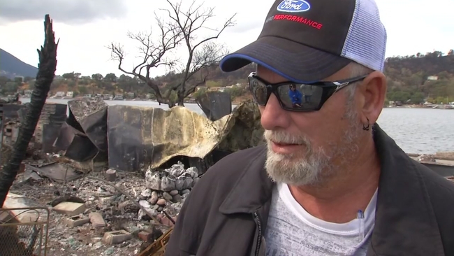 "My son and I drove our motor home through the fire," said Larry Piazza, who lives on the hillside above Holiday Island, also devastated by fire. Somehow his home survived.