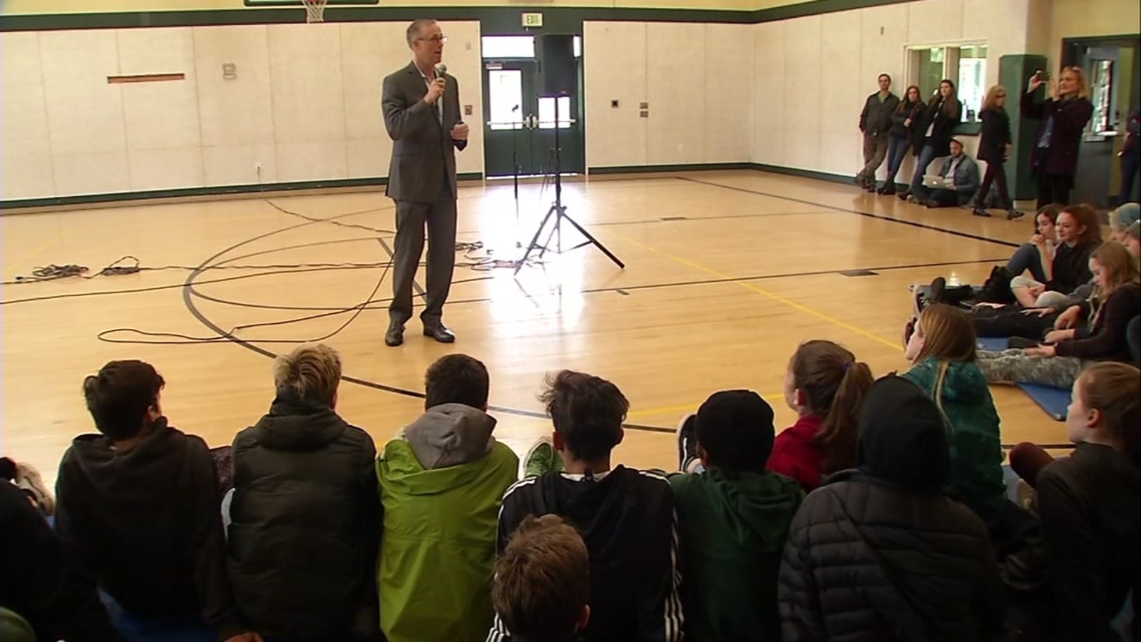 North Bay Democrat Jared Huffman looked over the 90 or so sixth, seventh and eighth graders in the gym at Lagunitas Middle School in San Geronimo and said, "I've been looking forward to this conversation with you."