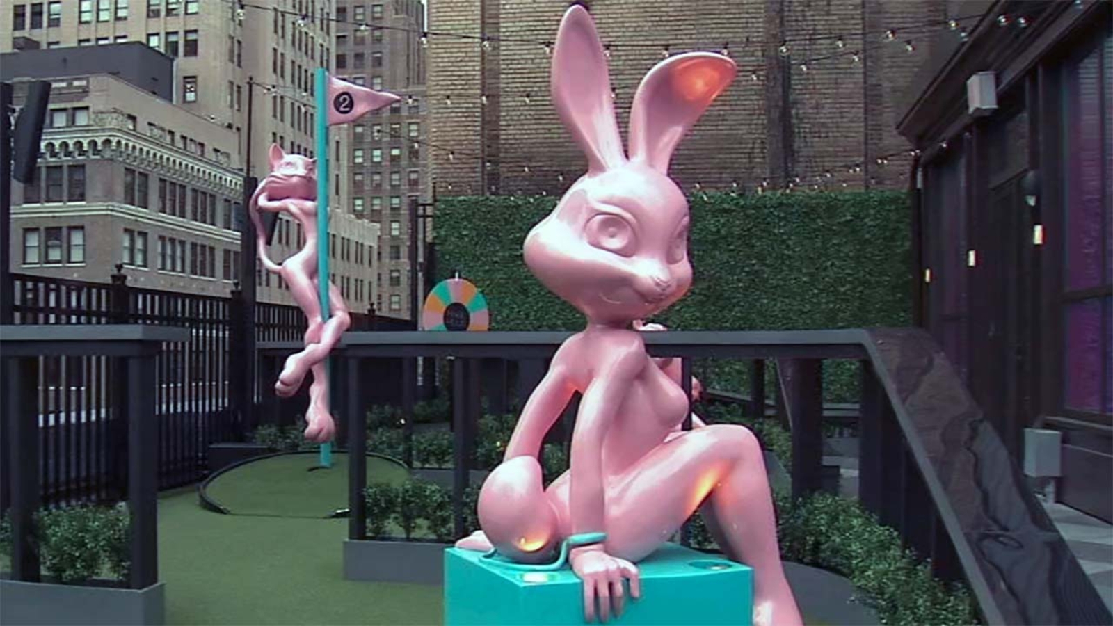 The naughty hot spot's main attraction is its putt-putt course called "Foreplay," which features life-size cartoon animal sculptures in suggestive poses on the green.