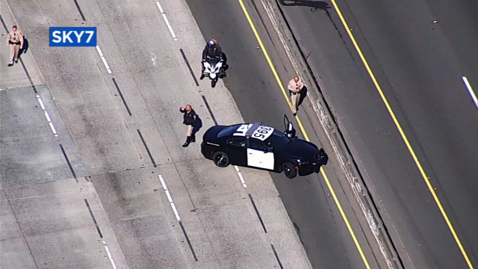 SKY7 was over the Park Boulevard exit as several CHP officers were on the scene, searching for evidence.