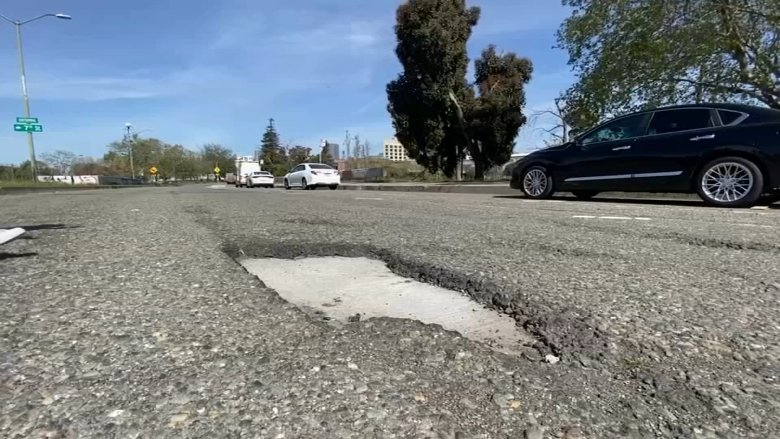 "Everyday, we see people come off the freeway. You watch them if you keep standing here long enough. You'll see them people swerving out, swerving over, they'll slow down, see? Everyday and if you're parked here, they will side-swipe your car. There have been many people who have had accidents," expressed Shanon Eggleston, an Oakland resident who lives on a street full of potholes.