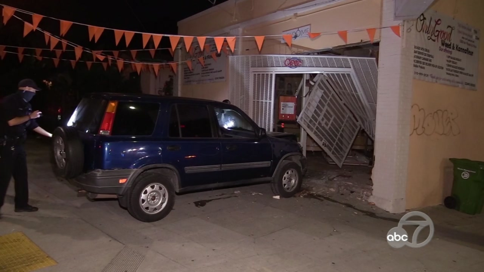 A car crashed into the dispensary on High Street and Fairfax Avenue in Oakland overnight. The owner of the cannabis club says his building was broken into and he lost more than $100,000 in product and cash.