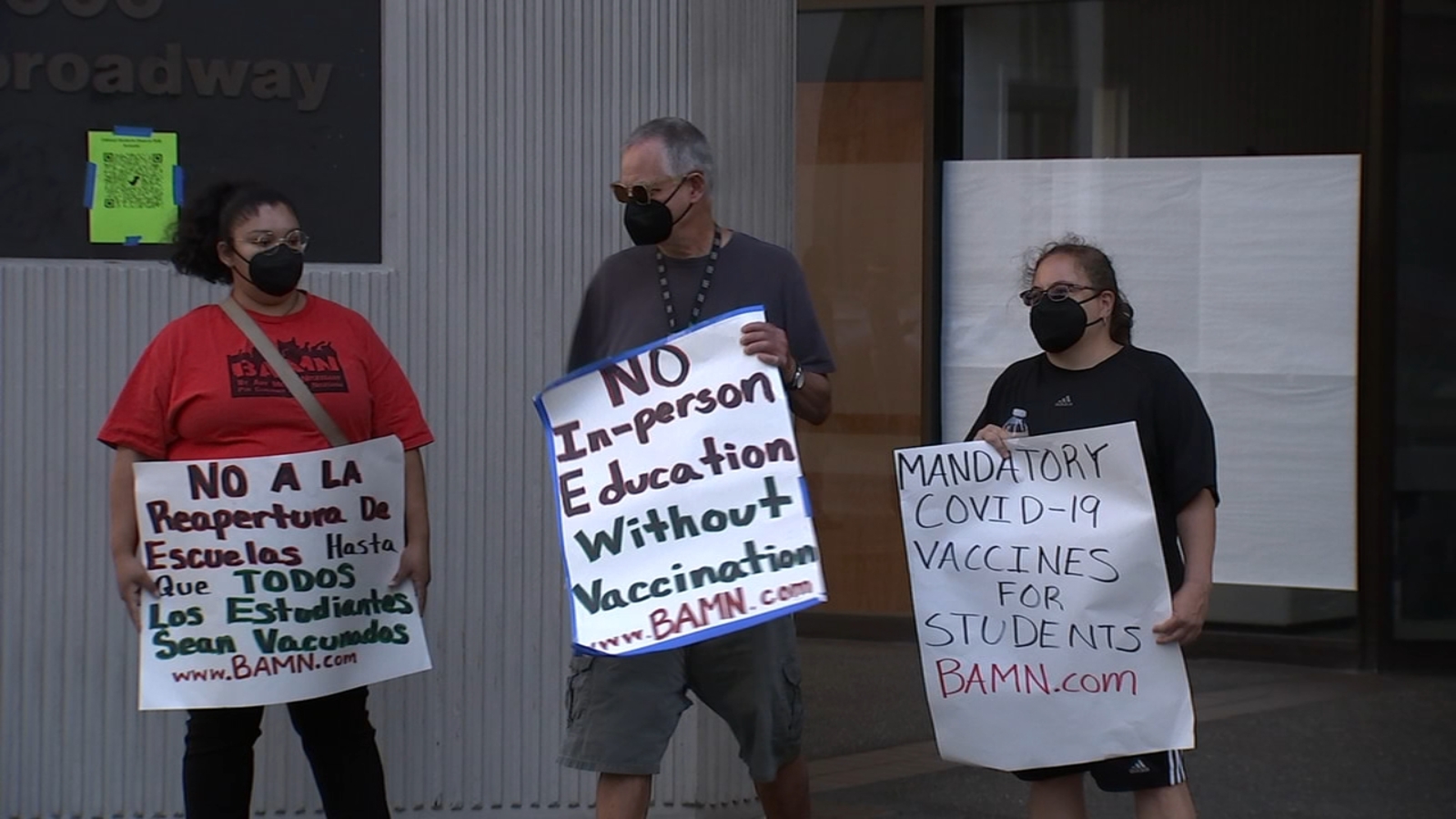 Parents, teachers union protest current COVID testing protocols in Oakland Unified