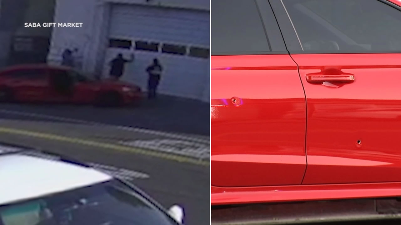 Two bullet holes can still be seen on the passenger side of a red Honda. Oakland firefighters confirm that a 15-month-old toddler inside that car was struck by at least one bullet around 6:15 p.m. Monday.