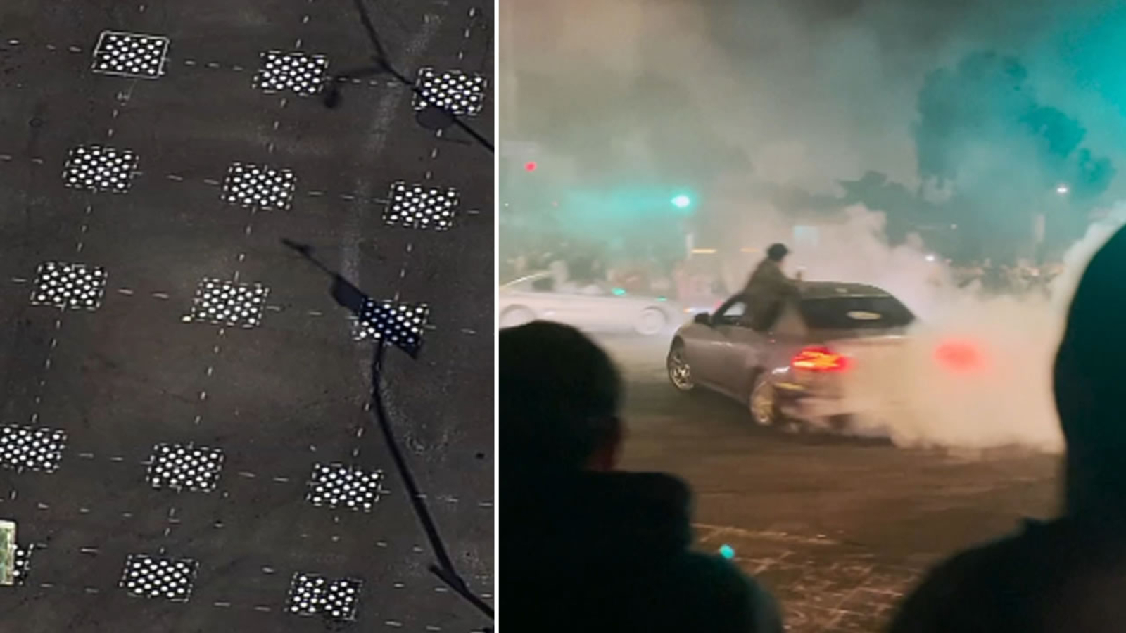 Last Sunday, a massive sideshow involving 300 cars left one man with critical injuries after he was struck by a moving vehicle. Now, on the intersection of 35th avenue and Mac Arthur the cluster of pavement markers covers the tire marks of years of sideshows. Councilmember Gallo said it took 6 months to finalize this strategy.