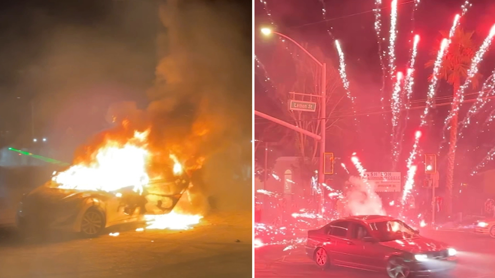 In another sideshow, it ended with a car fire.