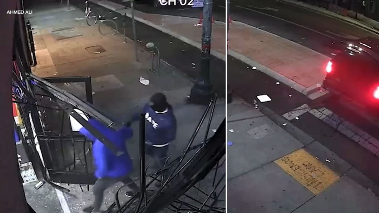 Ali shared surveillance video of a robbery to one of his stores. It shows people in an SUV hooking a chain to the gate of his store and driving away to yank it open. Once the gate was down, a group of people went in and started taking numerous items from the store.