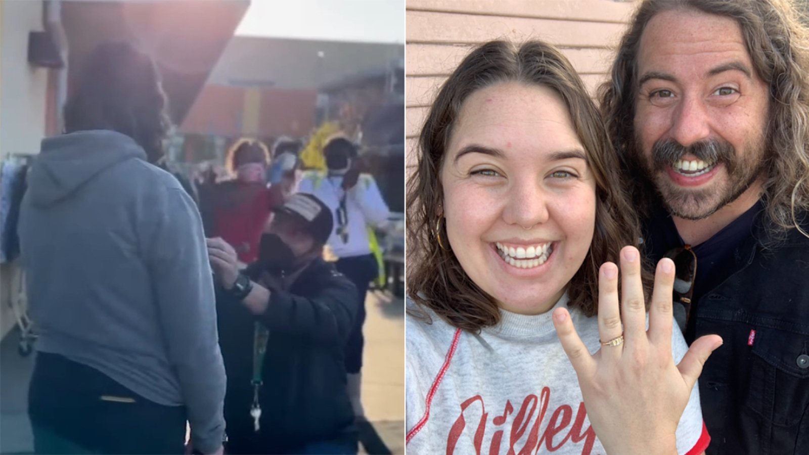 In early February, while Rubin was doing the morning announcements in front of the entire school community, Gilley caught her and the staff and students completely by surprise. "He came out with a sign that said 'will you marry me,' and I realized all my kids were very confused because none of them can read yet, so I had to stop and say here's what's happening. And they were like, 'we went to a wedding today!' and I had to say, 'you did not go to a wedding, actually.'"