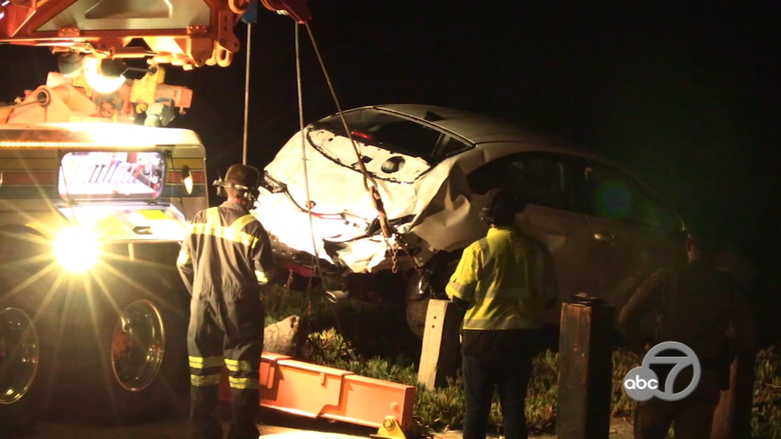 It's unclear who was driving the car and how it ended up off the cliff.