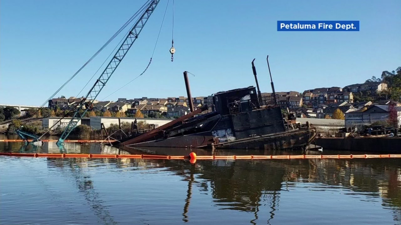 Responders from the Petaluma and North Bay fire departments set up containment booms around the sinking barge to contain any petroleum leaks and limit their spread, Costa said.