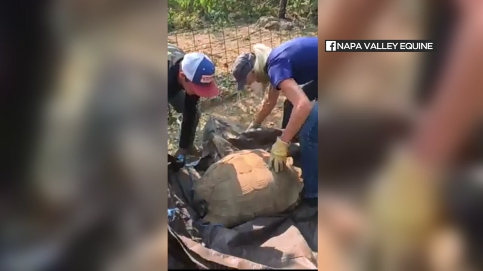 A Napa Valley equine vet posted video on Facebook showing a search and rescue team led by Napa County Animal Control evacuating an 85-year-old, 200-pound tortoise.