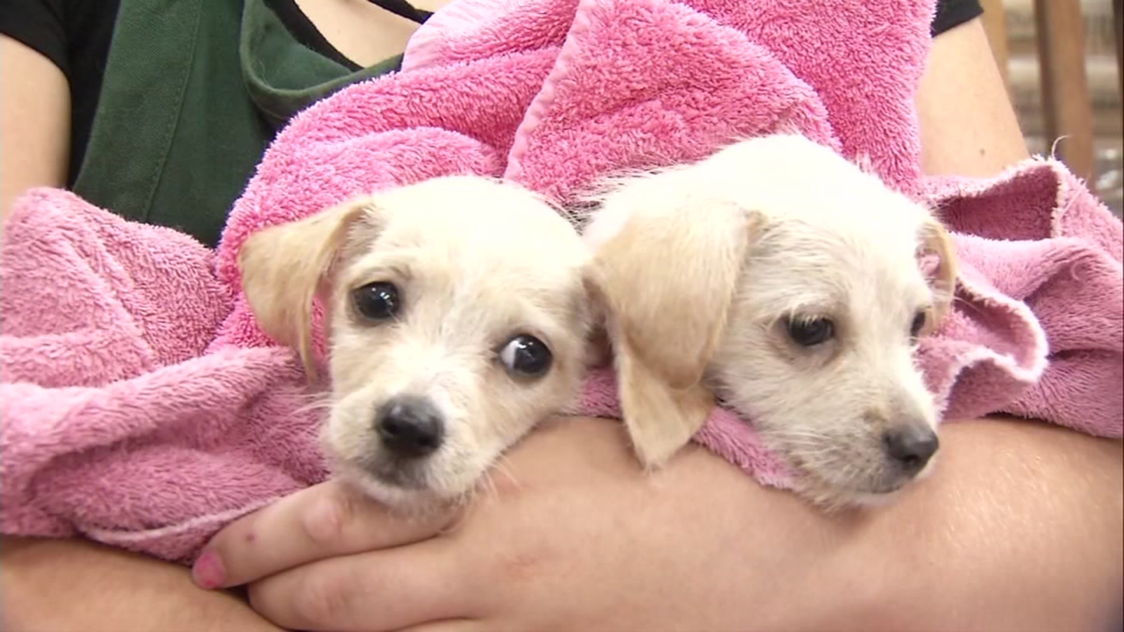 Now Oakland residence Kim Cole says Hurricane Harvey has hit their house. The two little puppies are in their care temporarily until permanent homes can be found.