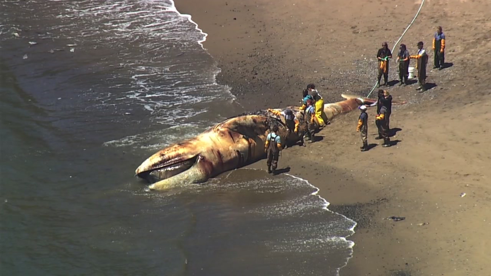 ANGEL ISLAND, Calif. (KGO) -- A team from the Marine Mammal Center in Sausalito was on Angel Island Wednesday afternoon, dissecting a dead whale.