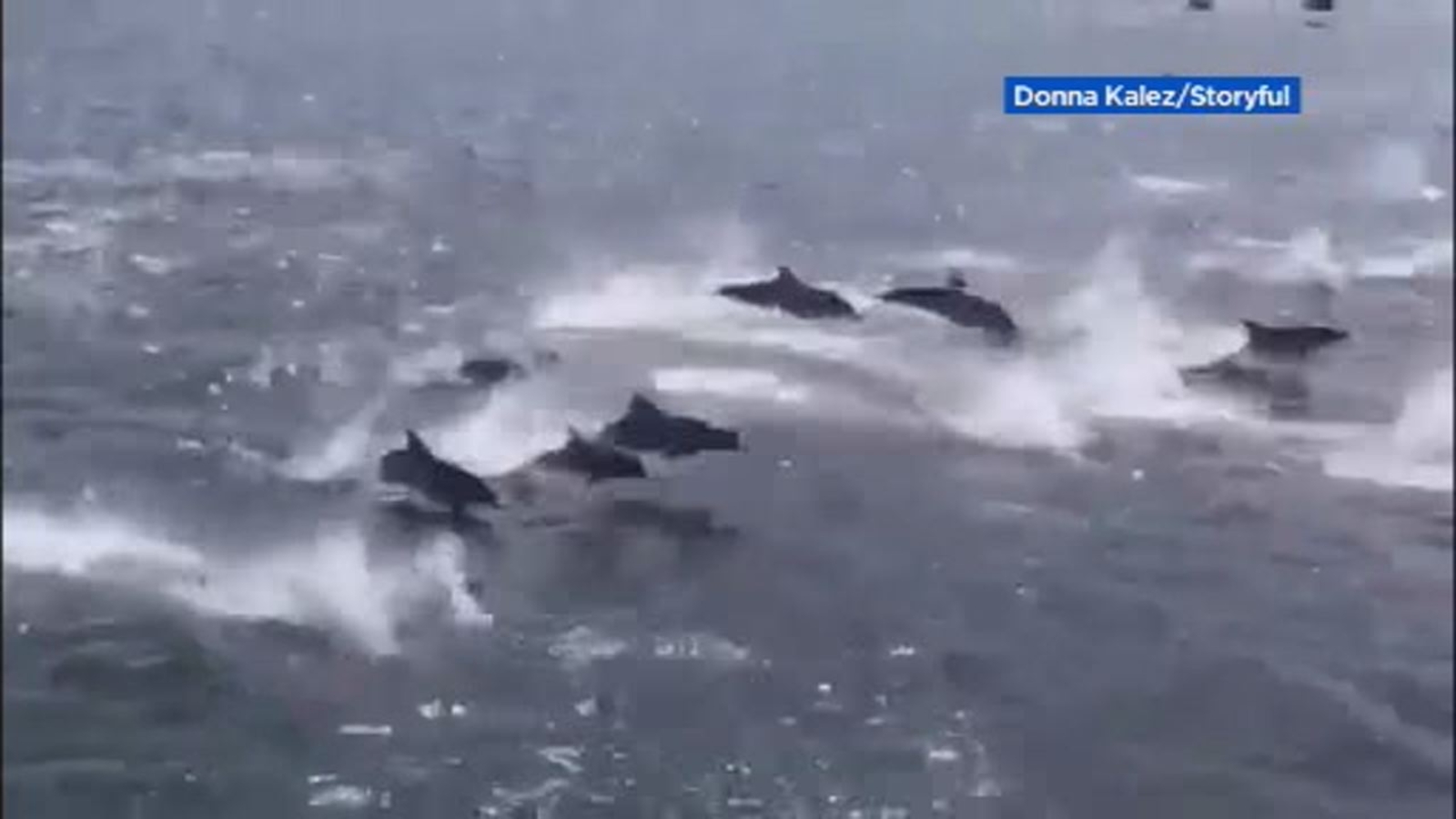 Donna Kalez shared video of the amazing sight. She was on a tour with Dana Wharf Whale Watch when hundreds of dolphins started jumping out of the water on September 2.