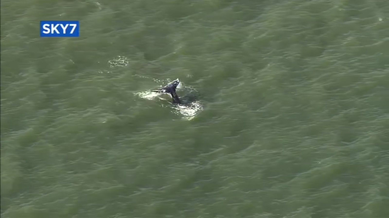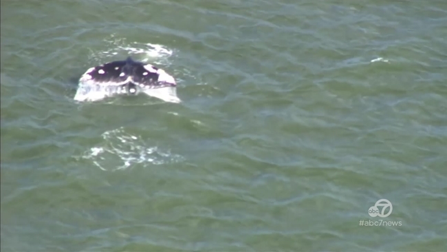 SAN FRANCISCO (KGO) -- A large gray whale was spotted breaching in the San Francisco Bay near Alcatraz on Wednesday. It didn't take long for people near Marina Green to take notice.